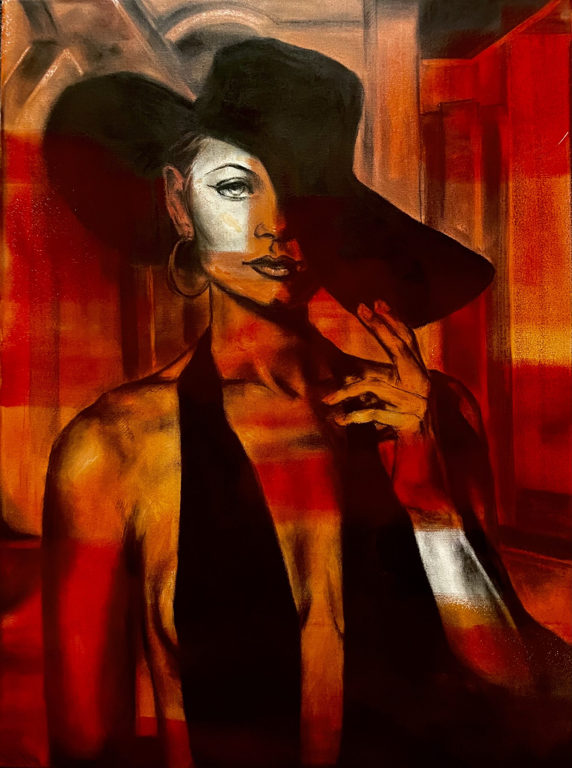 Kohle, Aquarell auf Leinwand, 60 x 80